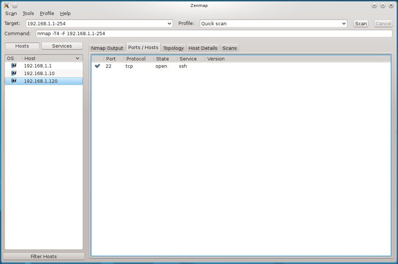 Ecco sbucare dal cilindro Zenmap , una comoda GUI per nmap.