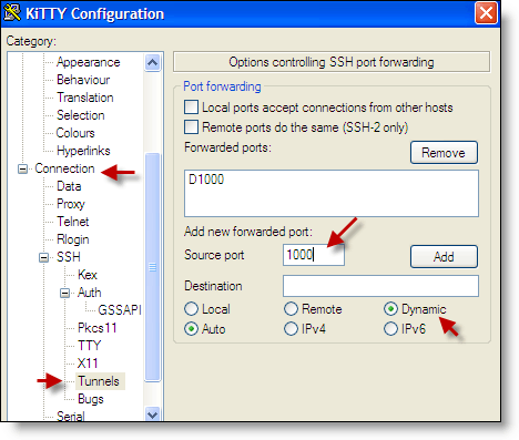 Anche in connection->ssh->tunnels dove andremo a impostare il tunnel per usarlo come descritto prima nell’esempio del browser.
