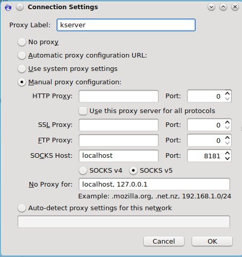 in questo esempio apriremo un tunnel sulla porta 8181 e nel caso caso si usi un proxy sul browser (ci sono vari addon/plugin Proxy SwitchySharp per chrome o Proxy selector per firefox) è possibile navigare in locale sulla macchina (per esempio per usare rtgui)