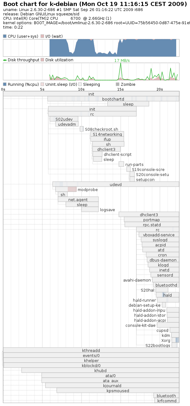 Per cronometrare il boot ho usato bootchart , installabile da repository (discusso nell’e-zine numero 1 ).